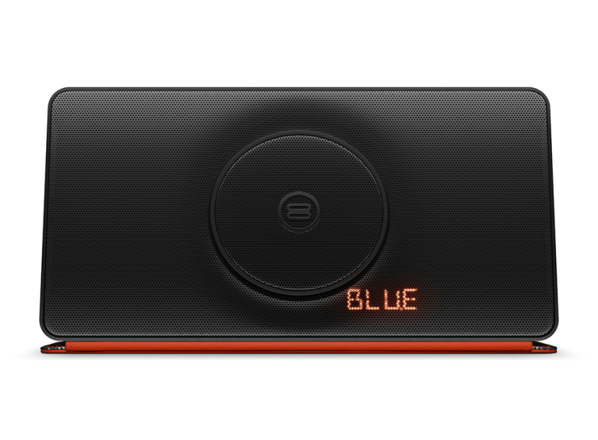 Available in black-and-orange and silver-and-blue models, the Soundbook X3( at Amazon)(Opens in a new window) looks like an edgier take on the Bose SoundLink II($399.00 at Amazon)(Opens in a new window), thanks to its flip-shut cover that automatically powers up the speaker and becomes a kickstand when opened. The cover also houses an internal FM radio antenna, a feature no Bose Bluetooth speakers have. The slanted angle of the 4.8-by-9.3-by-1.8-inch (HWD), 3.1-pound Soundbook X3, aside from looking cool, helps angle sound upward to the listener’s ears.