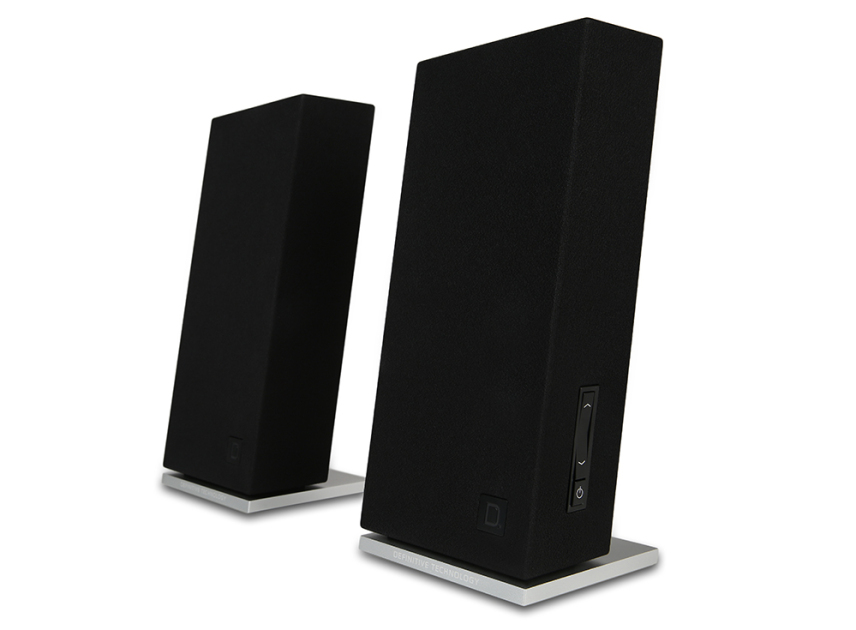 The appropriately named Incline speakers sit at an angle upon rectangular metallic bases, with the trapezoidal speaker enclosures leaning back and pointing the drivers up toward the listener’s ears (assuming the speakers are placed at desk level). The 11.5-by-5-by-4.4-inch (HWD) speakers’ simple, handsome monolith-style design manages to blend in with modern decor without looking boring.