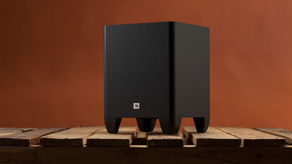 The wireless subwoofer is relatively small, a black, 12.6-by-9.5-by-9.5-inch near-cube with rounded corners and a slightly trapezoidal profile. It features a single 6.5-inch downward-firing driver that stays hidden from view. Besides a silver-colored JBL logo on the front, the subwoofer is nearly completely unmarked except for the back panel, which holds a round acoustic port, the power connector, an indicator light, a phase switch, and a button for syncing with the soundbar.
