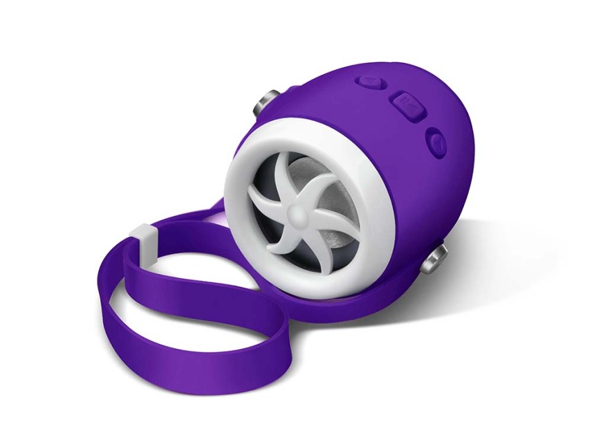 Available in black, white, pink, purple, or blue, the BM101 is barrel-shaped and pocket-sized. It sits upright, projecting sound upward through its single, one-inch driver. The driver itself is positioned behind a sort-of grille that looks a little bit like fan blades or a jet engine. Its entire body seems to vibrate with audio to help create a slightly greater sense of bass on certain tracks, but this is obviously not a big-sounding speaker.