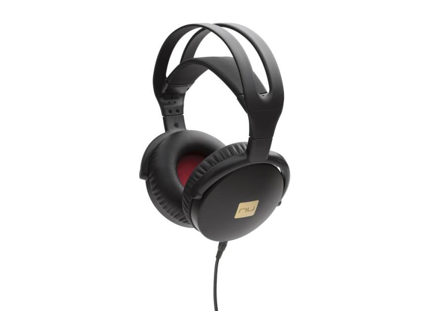 Two nice visual touches on the otherwise uniformly black frame: The drivers on the inside of the earcups are covered with bright red speaker grille cloth, and the square, gold-colored logo (which simply says “Nu”) on the outside panels of the ears looks luxurious, not tacky. An innovative headband design actually uses two bands. The one that rests on your head is flexible and adjusts automatically based on tension, while the top band is more rigid and helps stabilize the fit.