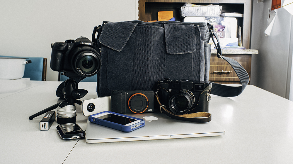 Amazingly, all of this fits in one bag. The Retrospective 40 from Think Tank is bigger inside than it looks on the outside—it holds a Nikon D800 and D810($1,604.95 at Amazon)(Opens in a new window) with room to spare—and I love the look of the bag in blue slate. It’s got an adjustable shoulder strap with some padding, and enough extra space for chargers, business cards, lens wipes, and the like.