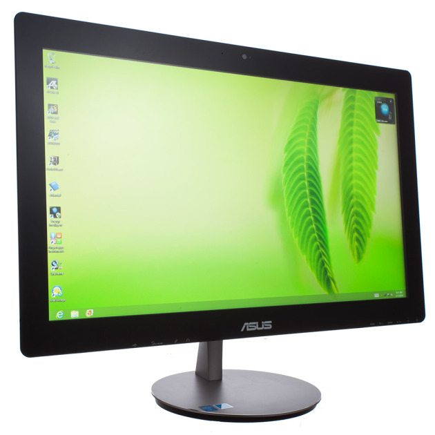 The ET2322INTH’s display is the main attraction, with a 1,920-by-1,080 resolution, an IPS panel, and 10-finger touch capability. The Asus ET2322INTH, in fact, looks very much like a standard monitor rather than a desktop PC. All of the components are installed behind the display, which is supported by a single slim metal arm and a round base. Despite the single supporting arm, the all-in-one is pretty sturdy, with little or no wobbling when touched. However, with only one hinge providing angle adjustment, you won’t see any of the height adjustment seen on the Editors’ Choice Dell Inspiron 23 (2350)( at Amazon)(Opens in a new window).