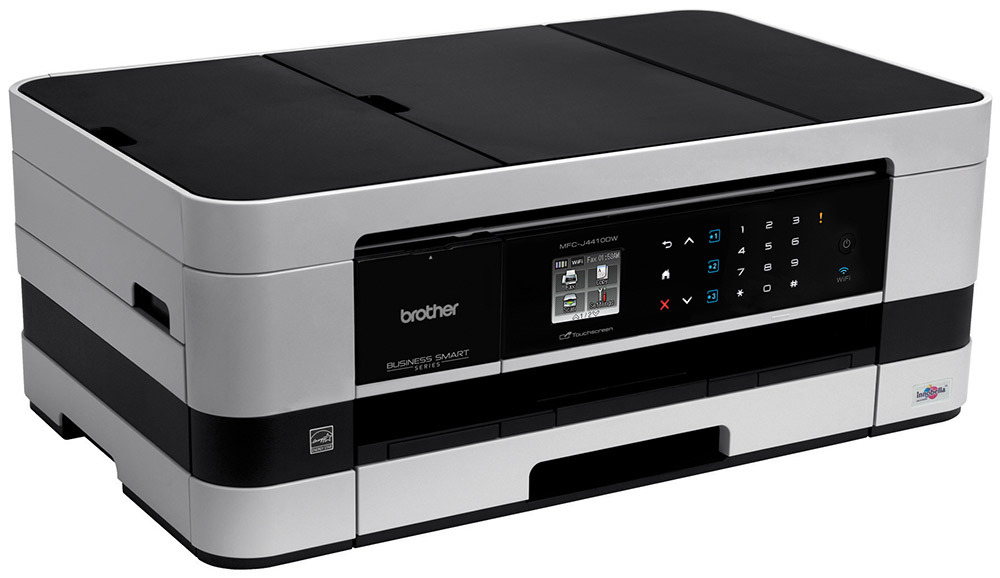 Like all of the Business Smart series printers, the MFC-J4410DW is primarily a letter-size printer that can also handle up to tabloid-size paper (11 by 17 inches) through its manual-feed slot. If you need to print on tabloid-size paper, but only occasionally and only for one- or two-page documents, that makes it an attractive choice compared with more expensive printers with tabloid-size paper trays. It also makes for a much smaller printer—at 7.3 by 18.9 by 11.4 inches (HWD) for the MF-J4410DW.