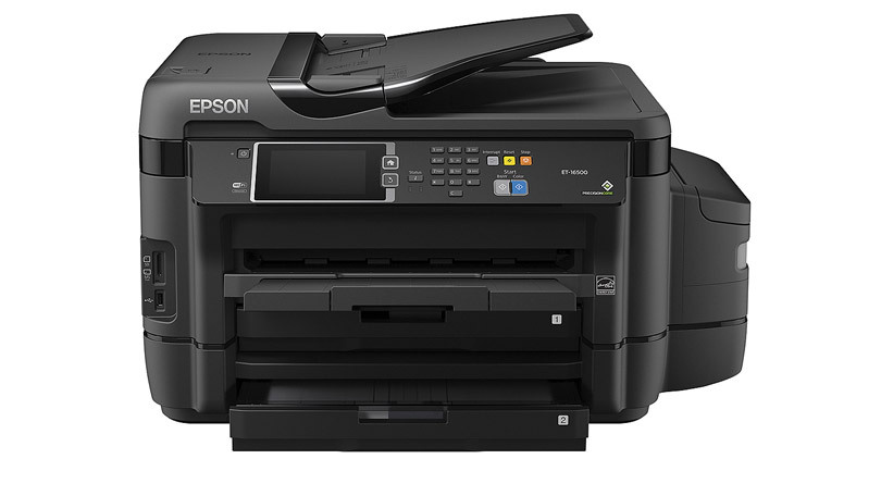 In addition to being somewhat large—16.5 by 26.2 by 32.2 inches (HWD) when printing, 16.5 by 26.2 by 19.1 inches when closed—the ET-16500 weighs a substantial 51 pounds. Most likely you’ll need two people to wrestle it onto its own dedicated (and sturdy) table or printer stand. The good news is that the ET-16500 supports wired Ethernet and USB connections, as well as Wi-Fi, which should make finding a suitable location easier. Mobile connectivity options consist of Wi-Fi Direct (a peer-to-peer, router-less protocol), Epson Connect, Epson Email Print, Epson Remote Print, Epson Scan to Cloud, the Epson iPrint App (for Android and iOS devices), and the Epson Print and Scan App (for Windows), as well as Google Cloud Print, Android printing, Fire OS printing, and Mopria Print Service.
