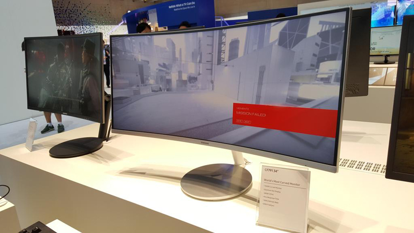 Samsung’s quantum dot technology is already available in its line of Ultra HD TVs. According to the company, it makes for better color accuracy and a sharper picture. That certainly appears to be true based on what I saw at the show. The latest Call of Duty and some sports titles really popped. On the wider CF791 I also got to try Mirror’s Edge: Catalyst, which is a weird game to use to showcase gorgeous graphics, since it’s pretty bland.