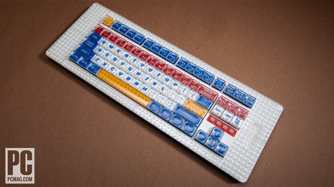 Pop off a keycap by hand or with the included puller, and you’ll see that each keycap base over each switch is a brick, too, laid bare. Dig under that to expose the hot-swappable key switches, and you’ll realize that this is well beyond child’s play.