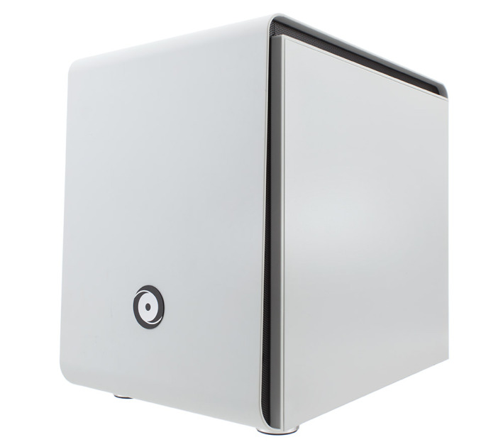 The Chronos is built into a customized version of the Bitfenix Phenom chassis, with plenty of cooling fans and piping for the liquid cooled processor. It’s a white chassis similar in style to the ones we’ve seen on the V3 Gaming Traverse and AVADirect Mini Gaming PC Core i5 Z77, but with some significant differences like which side the power button and USB ports are located, and the fact that the Chronos doesn’t have space for an optical drive.