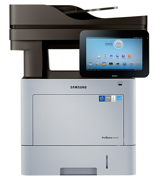 The Samsung ProXpress M4583FX ($1,799.99) is a monochrome laser multifunction printer (MFP) with a formidable feature set, including a humongous color touch screen, Android-based print apps, and support for single-pass scanning of two-sided documents. It also comes with several drivers, including PostScript, and has a colossal maximum monthly duty cycle. Unfortunately, while the M4583FX has very good text quality, it doesn’t fare as well with graphics or photos, and its speed is lackluster.