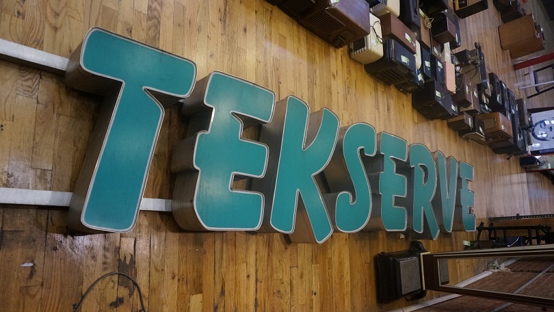 And apparently nobody had Tekserve’s design sense, which many attributed to co-founder Dick Demenus. Visitors to the cavernous storefront marveled at the scores of antique radios, old microphones, and electrical meters lining the walls. A room devoted to pro audio had glass doors that came from The Sands casino in Las Vegas. Visitors could buy an 8oz. bottle of Coke for a nickel from a 1950’s vending machine. Customers waiting to see an intake technician in the service department would take a decidedly analog deli counter ticket and watch for their number to be displayed on old Macs kept alive from the 1980s.