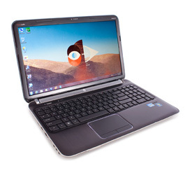 Many of HP’s budget-class notebooks offer Beats Audio, a combination of hardware and software that work together to deliver premium sound, and the dv6-6113cl is no exception. An angled silver speaker bar above the keyboard and two speakers mounted in the base provide lots of volume and a much fuller sound than you’ll get from most notebooks. Connectivity features include four USB ports (two USB 3.0 and two USB 2.0), VGA and HDMI video ports, dual headphone jacks, a microphone input, and a wired Ethernet port. (Missing is an eSATA port, like the one found on the Lenovo IdeaPad V570-1066A9U.) An HP TrueVison HD webcam is embedded in the display’s upper bezel, there’s an SD/MMC card reader located on the front of the base, and a tray-loading DVD multi-drive is located on the right side of the chassis.