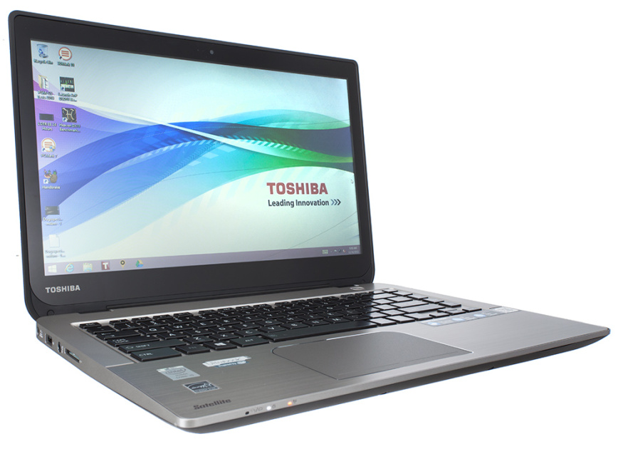 As an ultrabook, the Satellite E45t-A4300 is a slim and portable laptop, measuring 0.8 by 13.4 by 9.2 inches (HWD)—about the same size as the Lenovo IdeaPad U430 Touch($549.00 at Amazon)(Opens in a new window), and just a little heavier at 4.4 pounds. While similar in many respects to the similarly price Lenovo U430 Touch, the Satellite E45t-A4300 borrows several premium elements from a different laptop, the much more expensive Toshiba Kirabook( at Amazon)(Opens in a new window). The Satellite E45t-A4300 mimics the Toshiba Kirabook’s brushed metal exterior and slim tapered chassis. The Satellite E45t-A4300 has an affordable silver brushed aluminum chassis instead of the expensive, feather-light magnesium alloy of the Kirabook (2.7 pounds), but aside from the difference in material (and the subsequent difference weight), the two look quite similar. It’s also a far cry from the molded plastic chassis seen on the Samsung ATIV Book 9 Lite( at Amazon)(Opens in a new window), which also aped a premium design, but reduced the price by cutting corners.