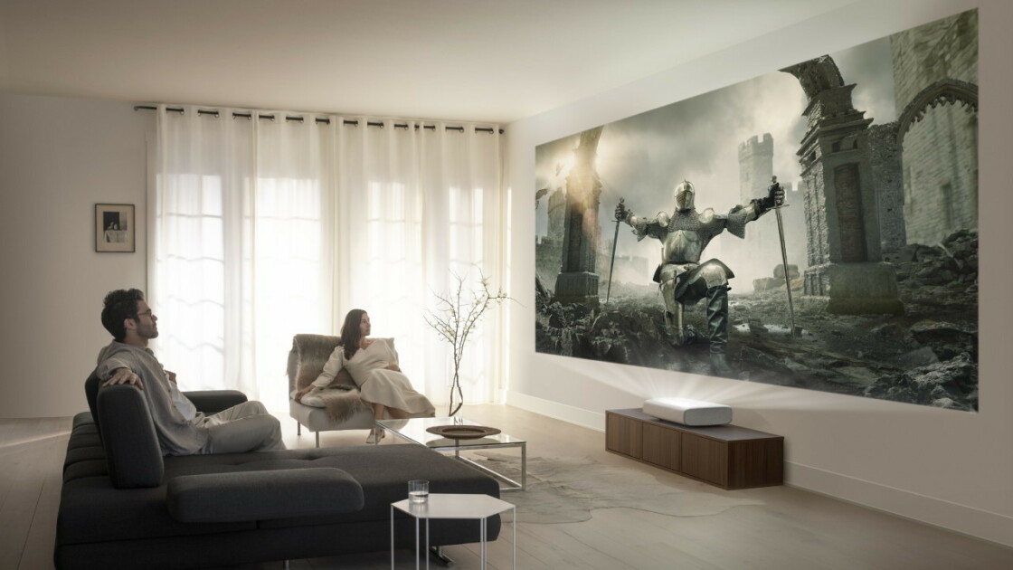The ultra short throw projector is called The Premiere and it replaces the need to own a television. It offers a 4K resolution with support for HDR10+ along with a peak brightness of 2,800 ANSI lumens and a director-friendly “Filmmaker Mode” for watching movies. The one pre-requisite to owning and using The Premiere is having a wall you can sit it right next to as well as enough space on that wall to project the up to 130-inch output.