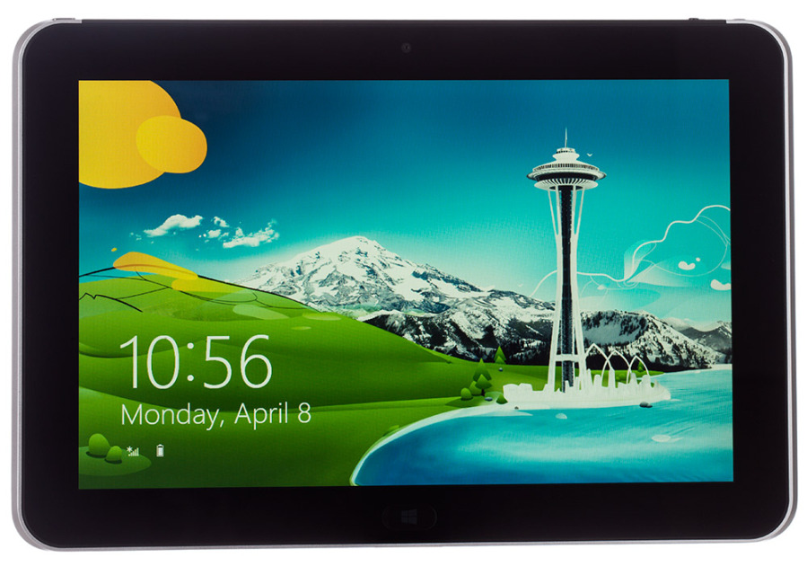 The ElitePad 900 measures a compact 0.36 by 10.25 by 7 inches (HWD) and weighs 1.37 pounds. This is quite portable, and thanks to its 10.1-inch screen it’s a lot easier to hold in the hand than the 11-inch tablets like the Acer Iconia W700-6465( at Amazon)(Opens in a new window) ($999.99) and the HP Envy X2 (11-g012nr) ($849). The ElitePad 900 comes with a 16:10 aspect ratio (1,280 by 800 resolution) screen, which differs from the normal 16:9 (1,280 by 768 resolution) screen found on other slate tablets. This was done to keep parity with other 16:10 screens on older desktops, laptops and tablet PCs, but you’ll only notice if your in-house apps were formatted with 16:10 in mind.