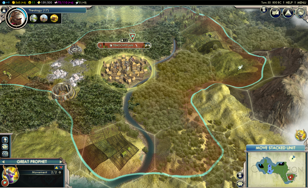 Central to the revisions of Gods & Kings is the reappearance of religion, the baffling absence of which was one of Civilization V’s blackest features. It’s been added in two separate ways: as an activity you pursue, first by creating a polytheistic pantheon that confers minor benefits and then graduating to a more specific and structured system (with more useful rewards); and as the new Faith resource, which gives you a new way to add units, construct buildings, and deal with the other rulers and city-states you’ll encounter during play. (The new Great Prophet unit is instrumental in spreading and advancing religion as ordinance and ordnance.)