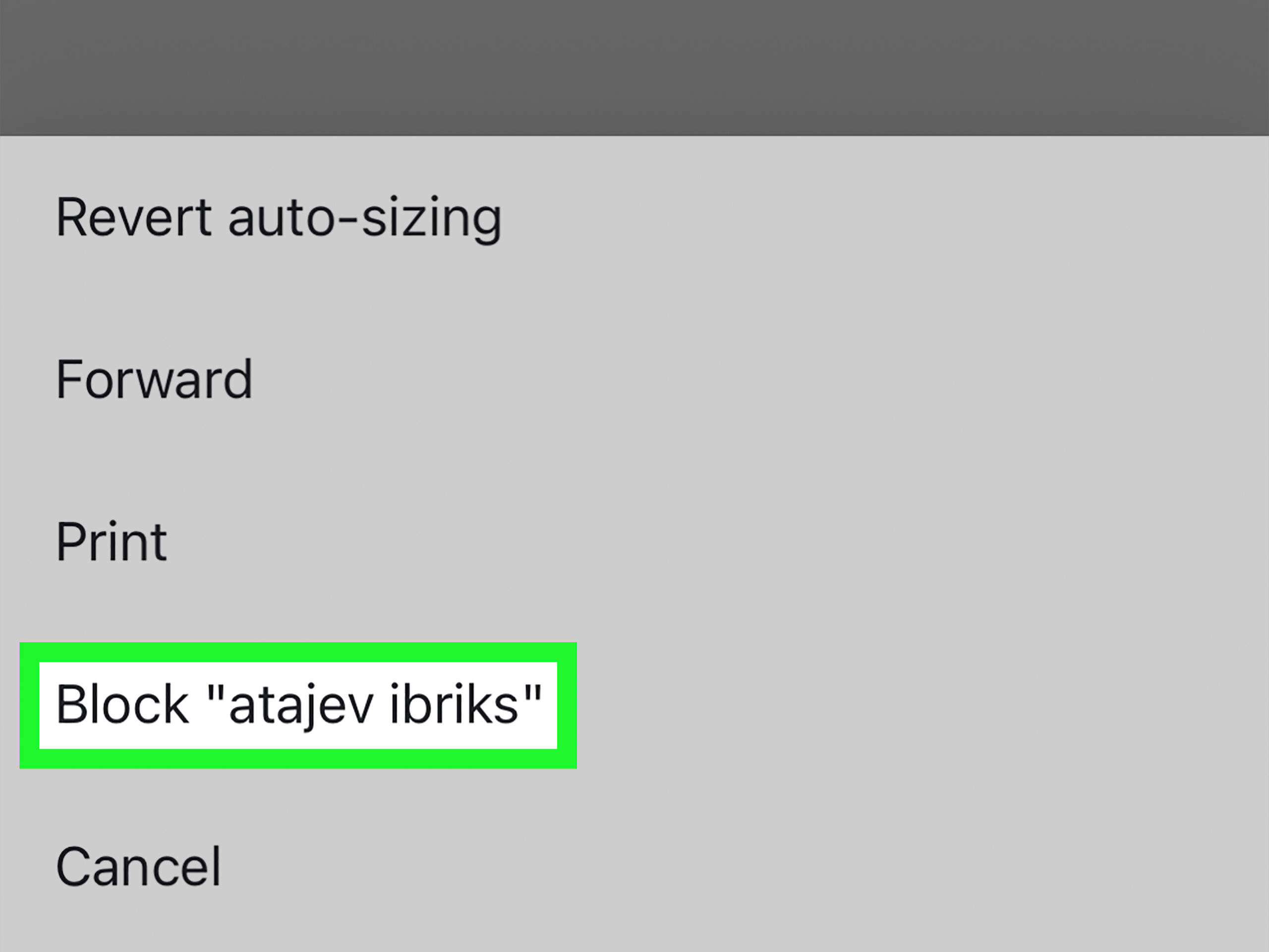 Tap Block . This will be followed by the sender’s name or email address.