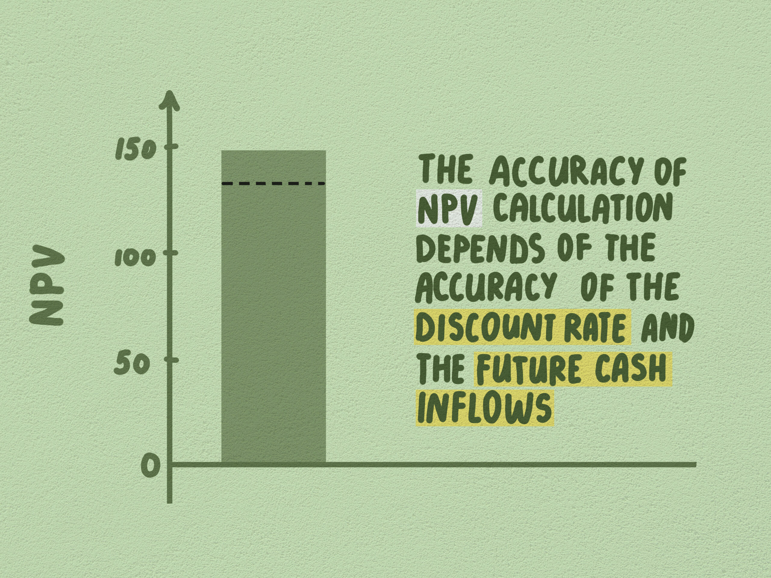 3Research valuation methods for more accurate NPVs. The accuracy of any NPV calculation basically depends on the accuracy of the values you use for your discount rate and your future cash inflows. If your discount rate is close to the actual return rate you can get on your money for an alternative investment of similar risk and your future cash inflows are close to the amounts of money you’ll actually make from your investment, your NPV calculation will be right on the money.[13]