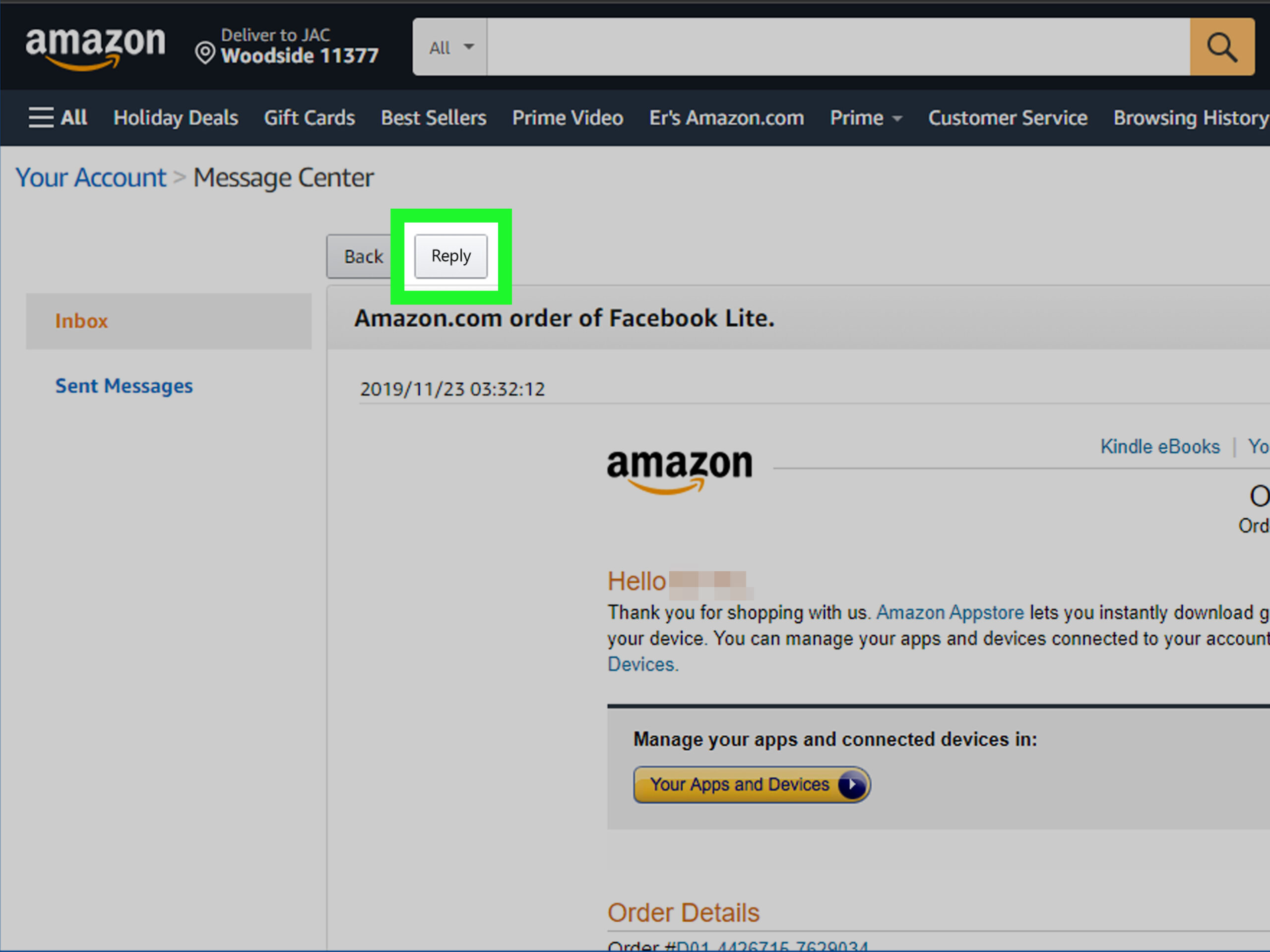 Open a message from the seller you want to communicate with. Scroll down the list of messages until you find one from the seller you want to talk to. You’ll see a copy of the message they sent you, along with information from Amazon about their buyer/seller communication policies.