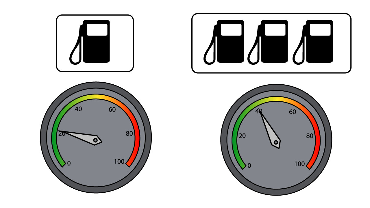 - The fuel gauge tells you how much fuel your car has left. It usually has a dial, like the hand of a clock that travels between “F” and “E,” with “E” signaling “empty” and “F” signaling “full.” Some more modern cars have digital fuel gauges; where electronic bars are displayed like the battery symbol on a mobile phone, and gradually decrease in quantity depending on how much fuel is in the car.