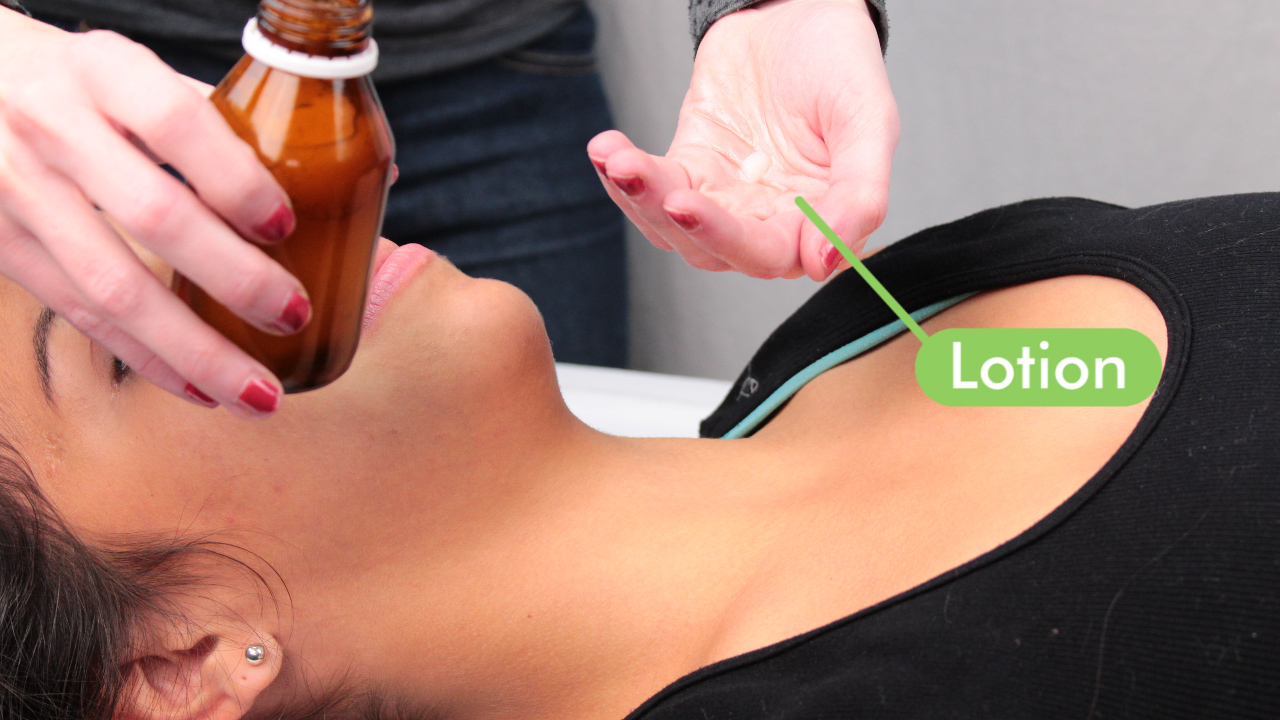 • Work the oil or lotion through your hands by rubbing them together. This warms the product up to make it more comfortable for them.