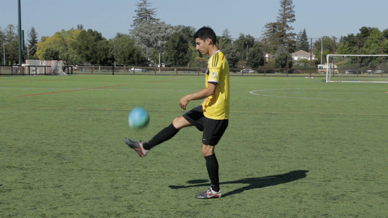- Again, notice the spin on the ball. Just like a pass on the ground, a pass in the air should have end over end spin. If the ball is spinning outside in, make sure you’re locking your ankle and watching your passing leg.