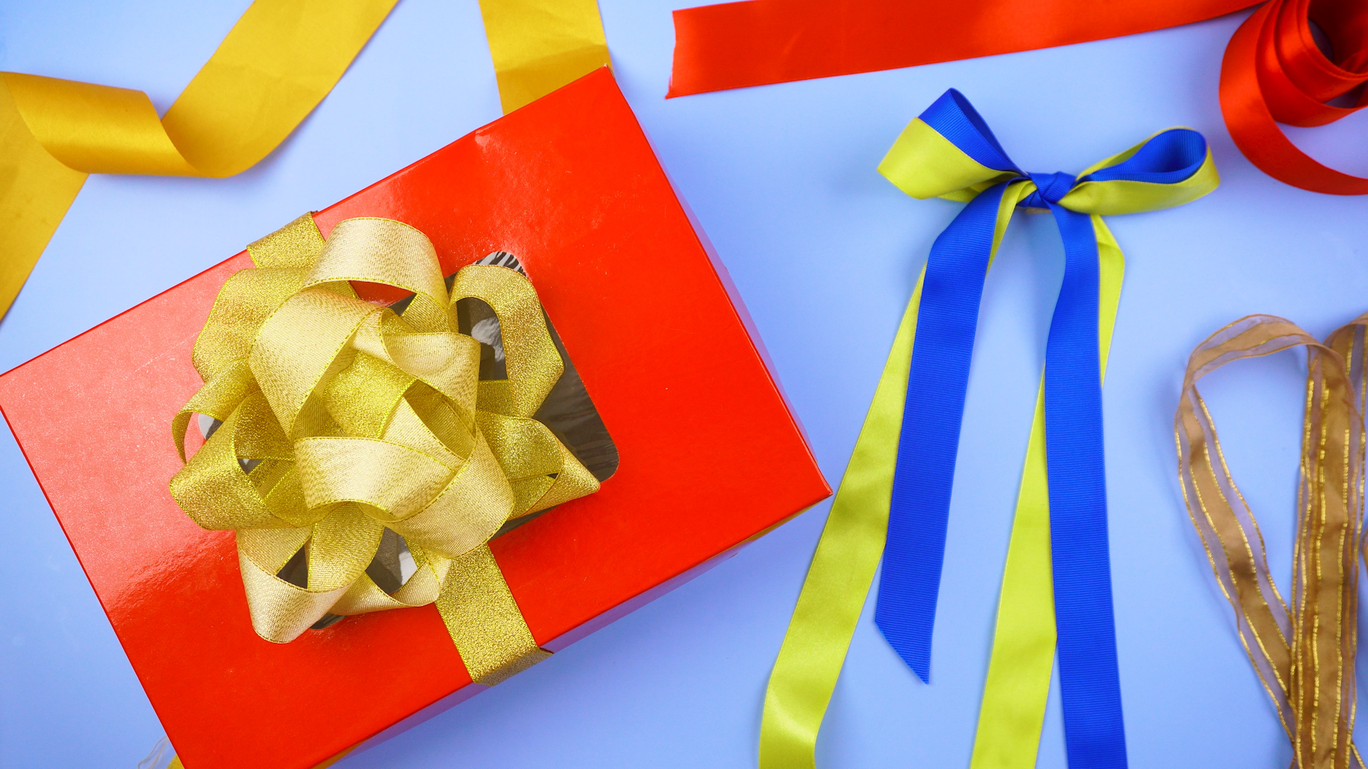 To estimate the length of ribbon for tying it around a box and then making a bow, wrap the bow loosely around an average sized gift or box, then allow for an extra 60cm/24 inches each side of the ribbon for making a bow.