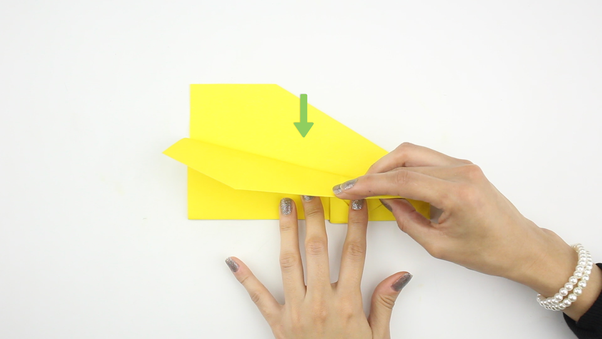 - Don’t let the point touch the bottom edge of your paper or it will affect the structure of your plane when you’re finished.
