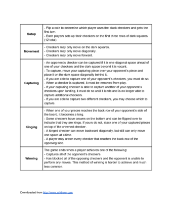 Checkers Rule Sheet