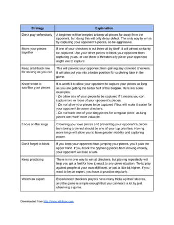 - Try reading about checkers strategies online or in books as well. Some checkers experts have written about their strategies and reading about them may help you to improve your game.