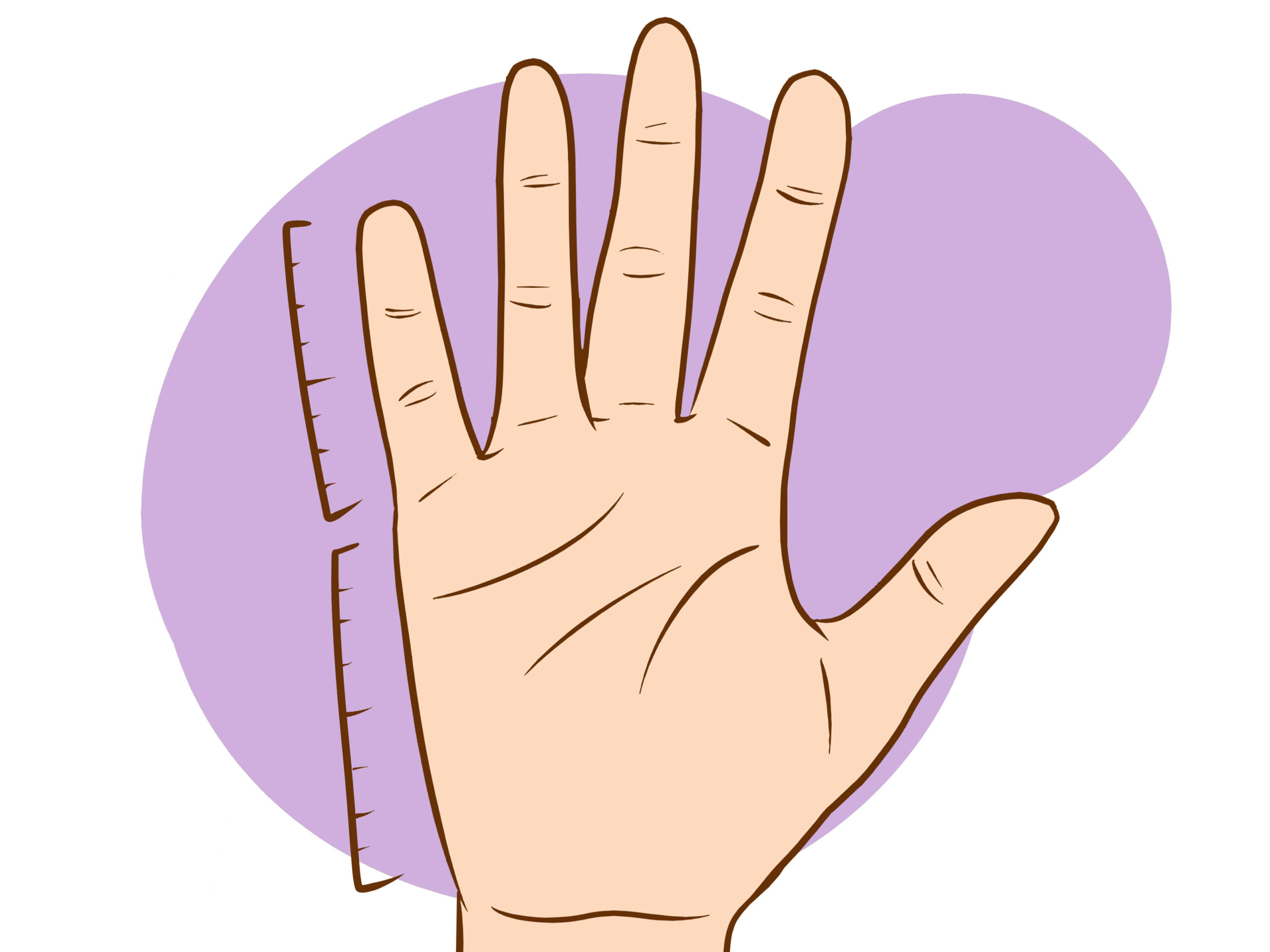 Determine the hand shape. Each hand shape is associated with certain elements and character traits. The palm length is measured from the wrist to the bottom of the fingers. The basic interpretations are as follows:-