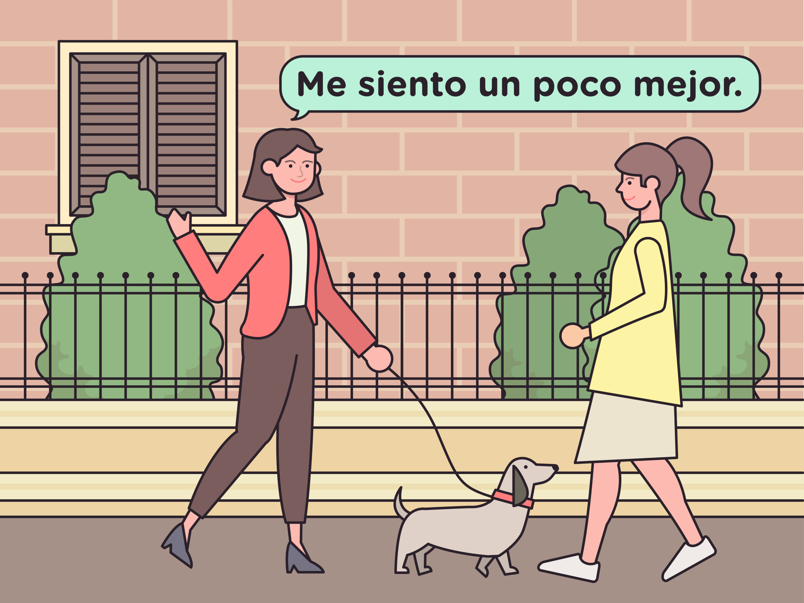 If you’re feeling a little better, you might reply “Me siento un poco mejor” (may see-ehn-toh oohn poh-coh meh-hohr).