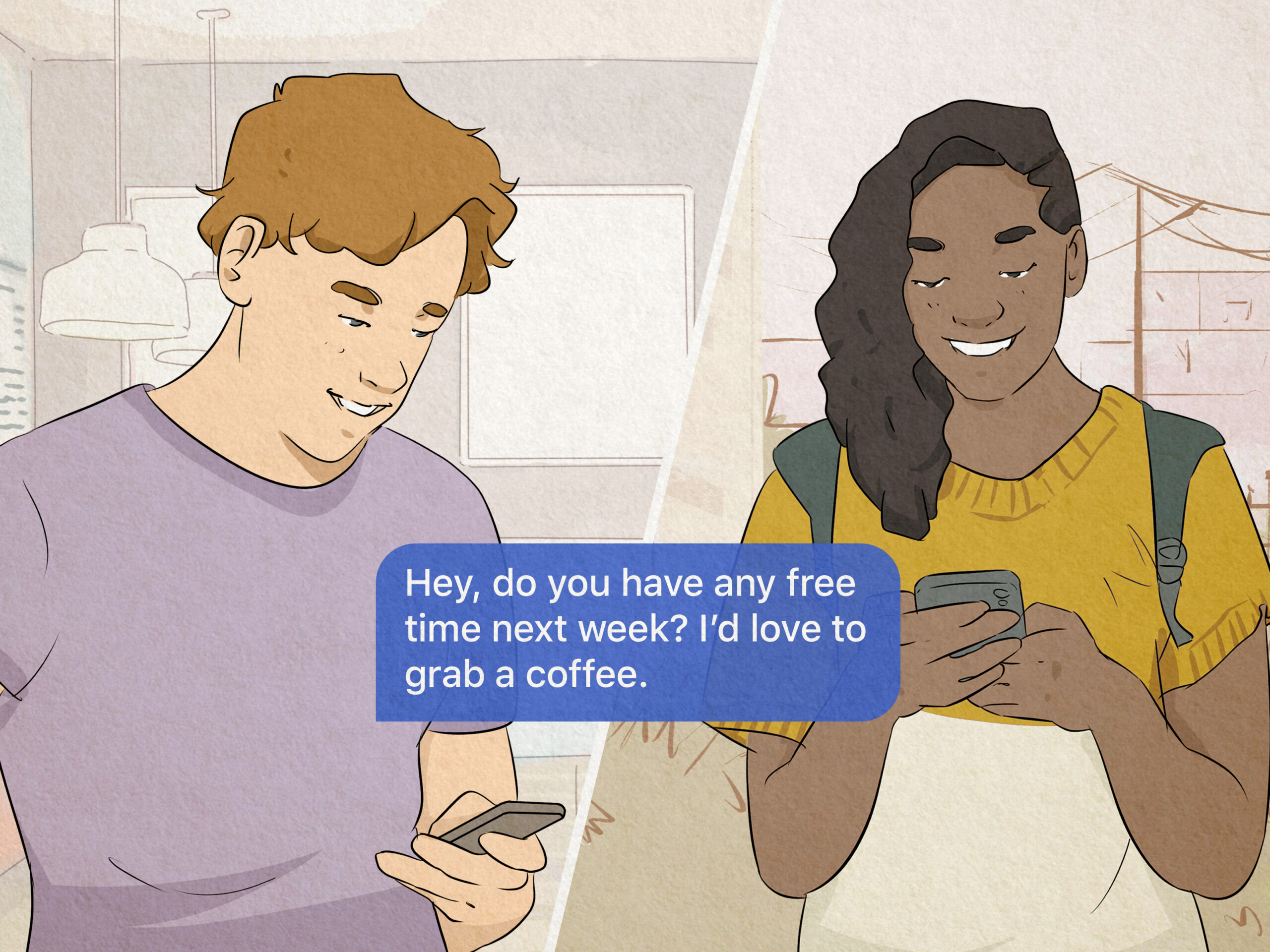 - “Hey, do you have any free time next week? I’d love to grab a coffee.”