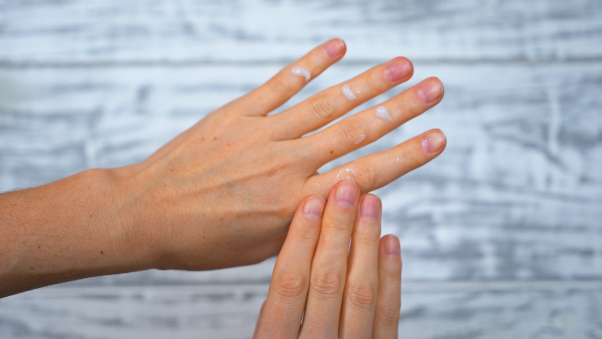 5Wash and moisturize your hands. Wash your hands with warm water and mild hand soap to remove any dust or residue. Then, dry your hands thoroughly and apply body oil, argan oil or a moisturizing lotion. Rub the moisturizer into your nails, cuticles, and skin to keep them hydrated.[18]