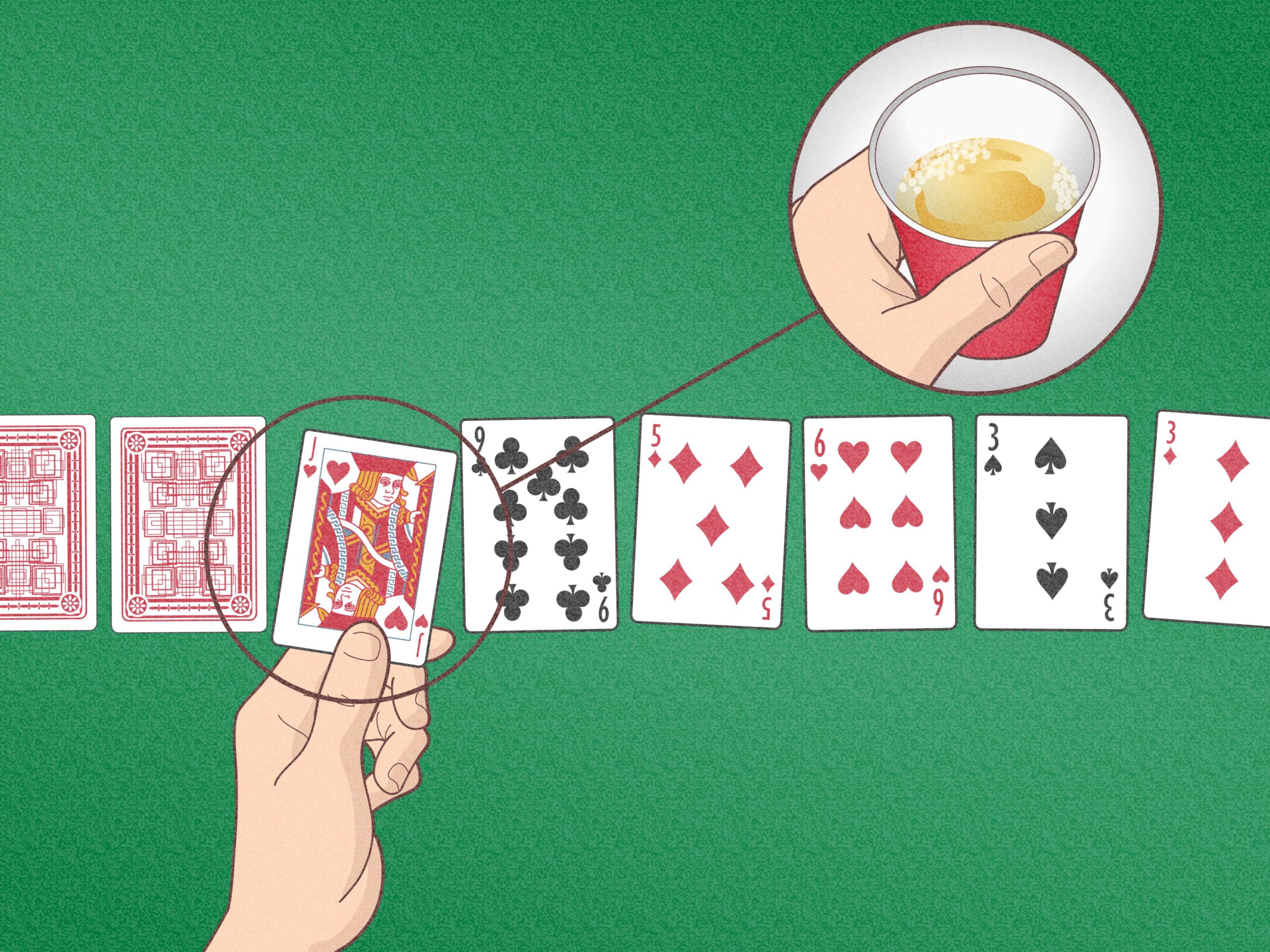 To up the ante, assign different values to each face card. Jacks are worth 1 drink, queens are worth 2, kings are worth 3, and aces are worth 4 or a shot.
