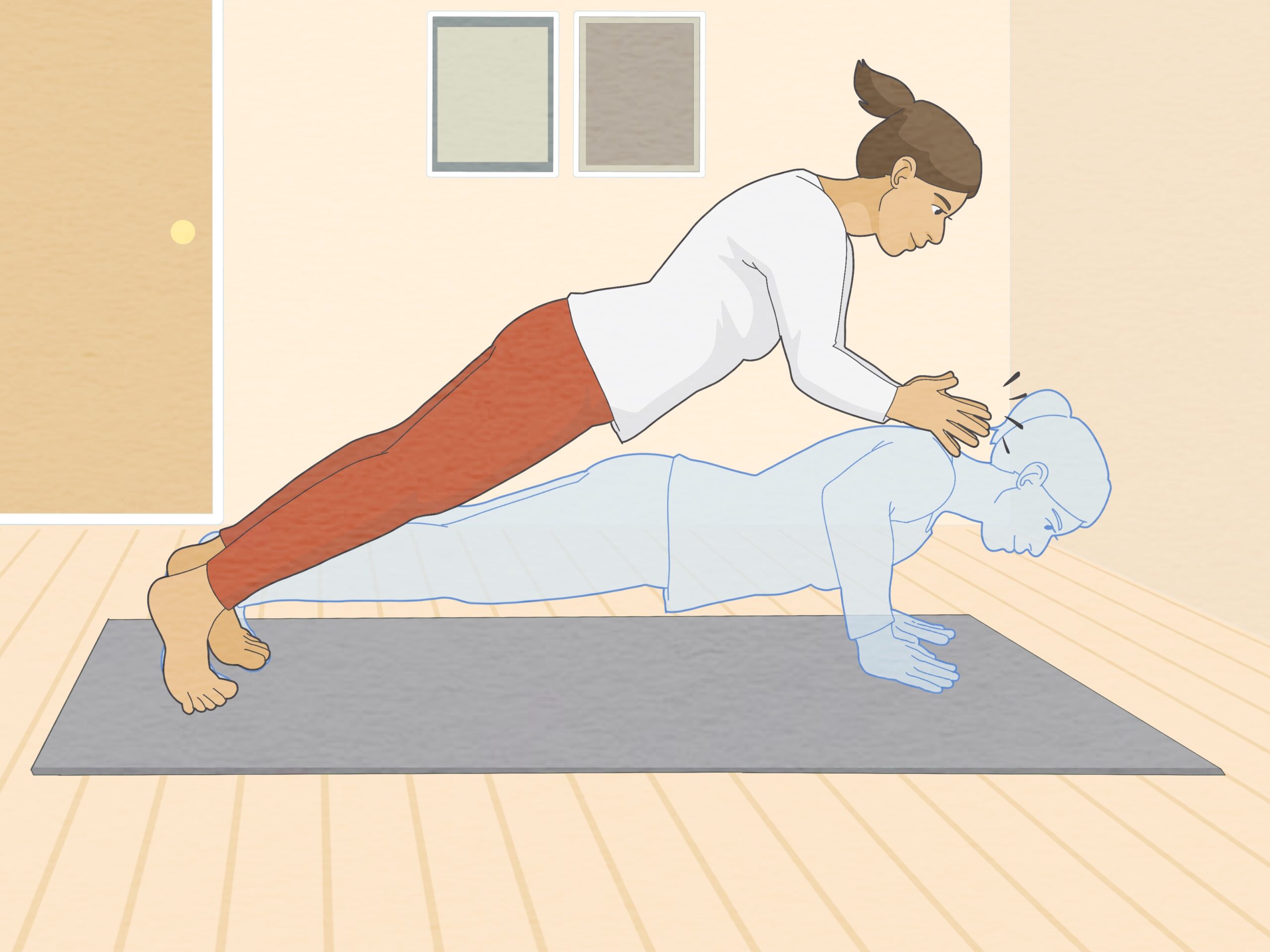 - Do push-ups on an exercise mat to cushion your hands and wrists so they don’t get sore.