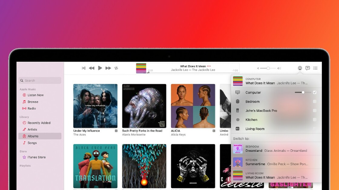 There is another way to stream if you’re in the middle of watching or listening. With the Apple Music app open and playing a song, for example, navigate to the Now Playing screen, tap the AirPlay icon, and select the Apple TV or Mac to push the media to the appropriate destination.