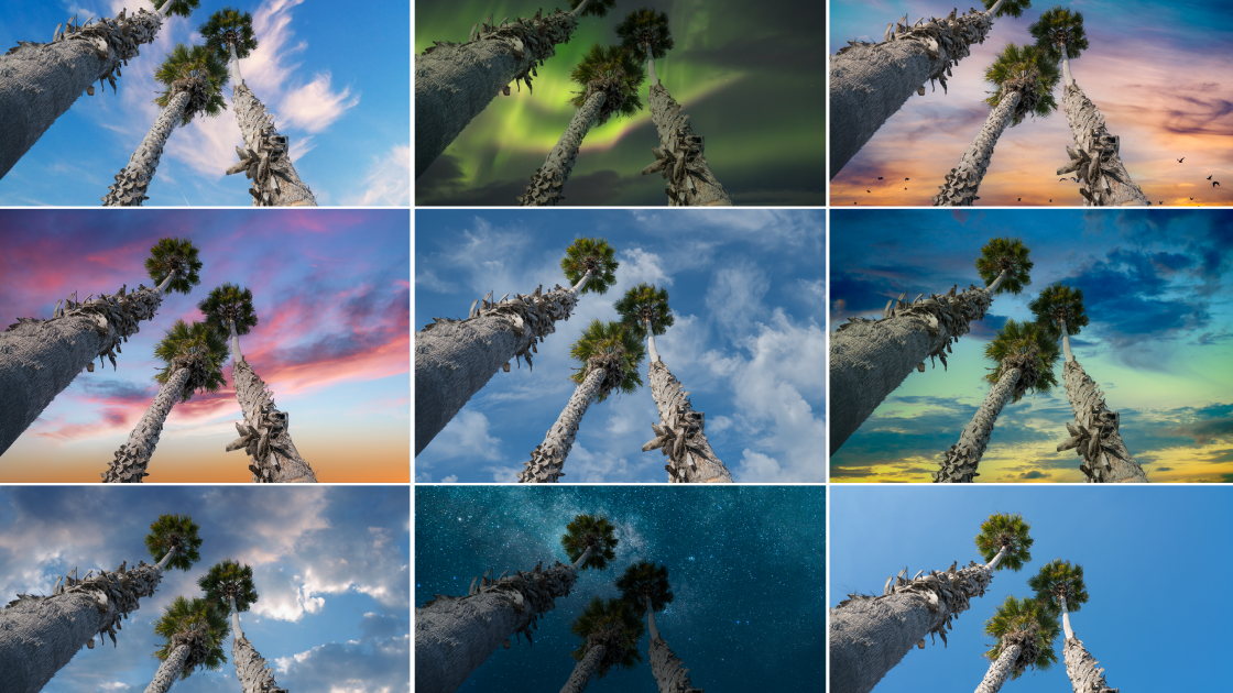 The new Get More Skies option in Photoshop’s Sky Replacement tool lets you choose from up to 5,000 sky backgrounds, including night scenes, fireworks, and sunsets.