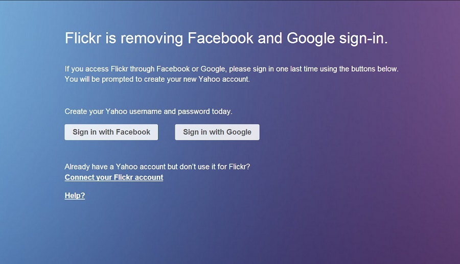 As of June 30, Yahoo will eliminate Flickr’s social media login options, instead requiring everyone to have a Yahoo ID.