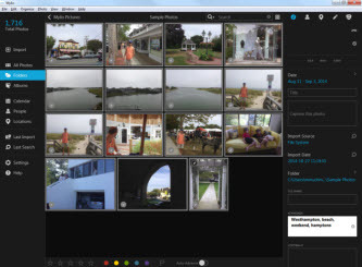 Browsing through photos is quick, and you can do so with the mouse wheel. A side panel switches among Info, People, Locations, Edit, and Sync modes, while a left one offers navigation options among folders, albums, and other views. Navigating your collection is easy and intuitive.