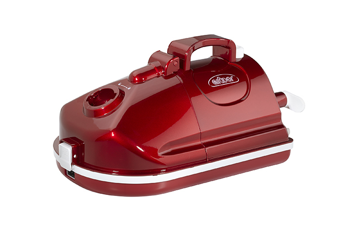 I hope you like red. The plastic base of the aiRider has an almost sports car-like red sheen to it, with a white Power button on top and the aiRider logo printed on white in either side. The vacuum tube is red with black rings, while a 20-foot gray power cord wraps neatly around the base. The color palette isn’t exactly complementary, but unless you look closely, all you really see is red.
