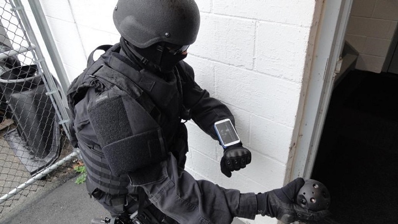 The device sports six monochrome WVGA cameras that snap photos as the ball rolls and stitches them into a panoramic shot that appears on an officer’s smartphone. It can shoot one full 360-degree panorama per second and has a transmission rate of 60 feet.