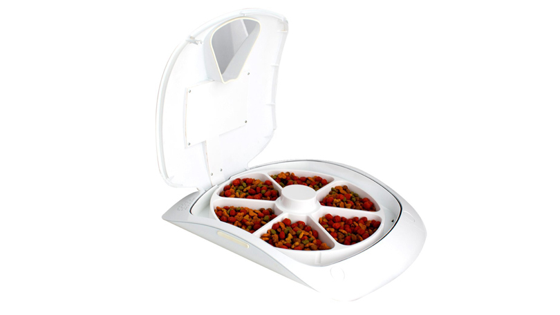 The Feed and Go connects to your home network via Wi-Fi or a wired LAN connection and uses a Web-based dashboard to schedule feeding times. It sports a built-in camera so you can watch your pets chowing down, and it will notify you when your pet has been fed. Its $299 price tag is a bit over the top and it lacks a battery backup, but it works as advertised, is easy to set up, and offers peace of mind while you’re away from home. The idea is similar to the iCPooch ( at Amazon)(Opens in a new window) , and while it’s twice the price, it doesn’t need a tablet to work.
