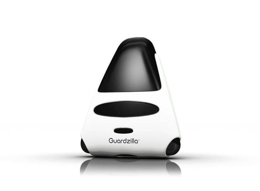 The Guardzilla looks nothing like a typical security camera. Standing 5.5 inches tall and 4.5 inches wide at the base, the camera is wedge-shaped and comes in either a black or white finish. It contains a motion sensor, a microphone, a small (but loud) speaker, a microSD card slot, and a removable lens cover that’s either tinted or clear. You’ll have to supply your own microSD card if you want the camera to store video locally.