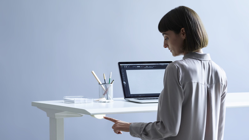 Then Anderson triggered the “it’s time to switch position for optimum wellness” setting. Rather than an annoying beep, or (*yawn*) “healthy tip at the top of the hour” alert, the table mysteriously vibrated in a haptic-powered “nudge.”