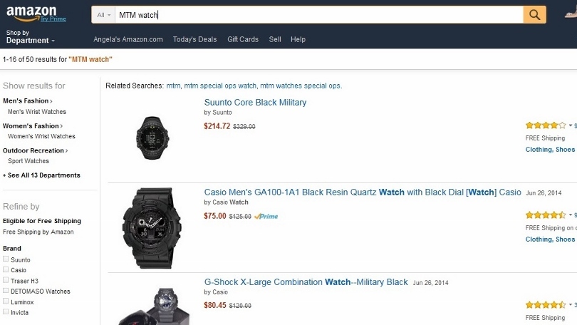 In its lawsuit, the watch maker said it doesn’t sell its products on Amazon, but that’s not very apparent when someone searches for them on the site. Instead of showing a message that it does not carry MTM products, Amazon displays a host of similar watches manufactured by MTM competitors.