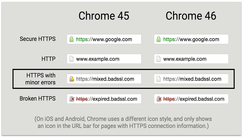 “We have to strike a balance,” the security team wrote. “We believe that it is better not to emphasize the difference in security between these [HTTP and HTTPS with minor errors] to most users.”