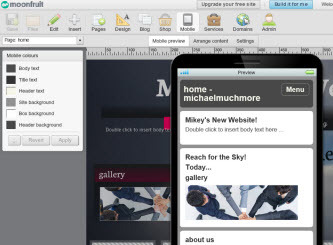 In general terms, Moonfruit’s prices are more generous than Squarespace’s (which has no free option) and somewhat higher than Weebly’s. A mere $6 a month removes that branding and ups storage to 500MB. The $12 per month Standard plan takes you beyond the single site limitation, allowing five, and adds mobile optimization, a custom domain name, and a Facebook shop. Standard also gets you 20GB bandwidth and 50 commerce products.