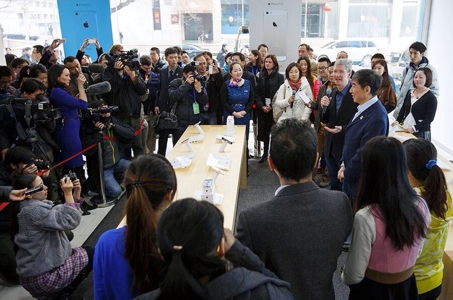 CEO Tim Cook joined China Mobile Chairman Xi Guohua at a Beijing Apple Store, where the two handed out autographed iPhone 5s and 5c devices to excited customers.